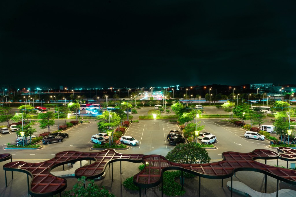 Bãi đậu xe máy, ô-tô tại sân bay Cam Ranh được đặt ngay tại cổng chính của nhà ga quốc tế, gần khu vực trả khách.
