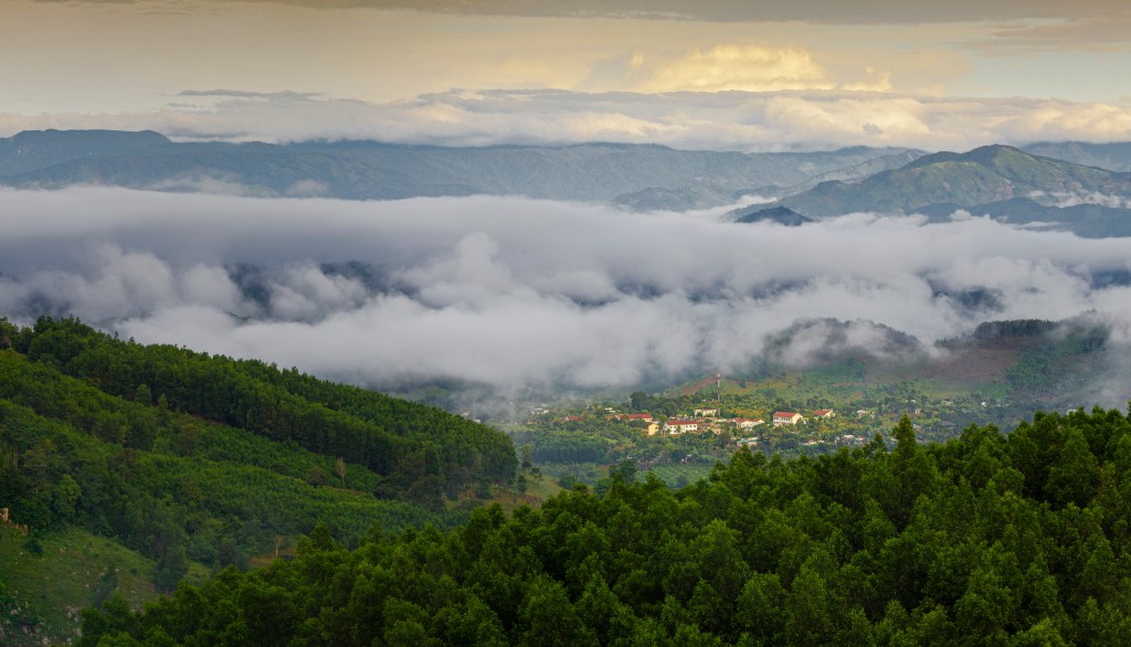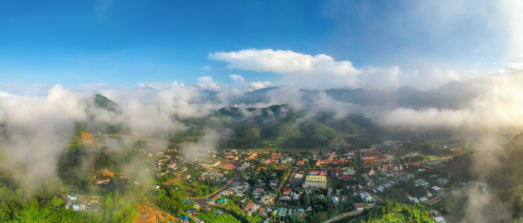 Trung tâm Khánh sơn là một thung lũng có độ cao 1300m so với mực nước biển, một ngày ở đây có đủ thời tiết của 4 mùa cũng như Đà Lạt của Lâm Đồng. Ảnh: Hồ Trung Lâm