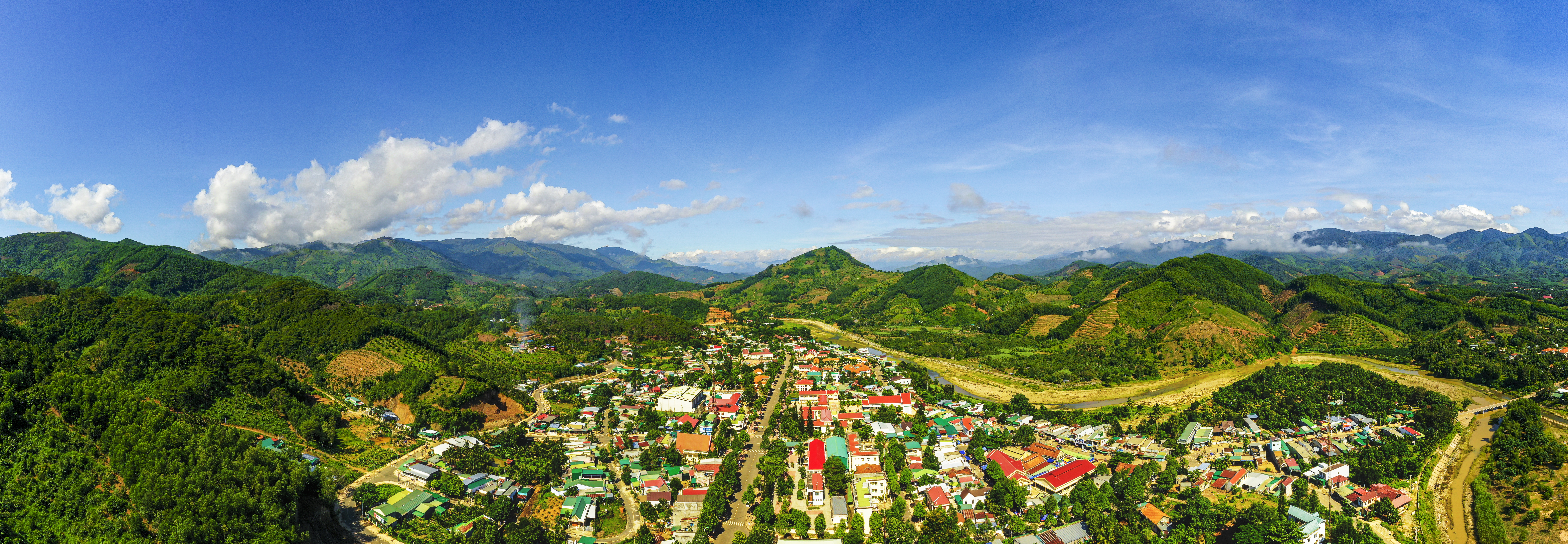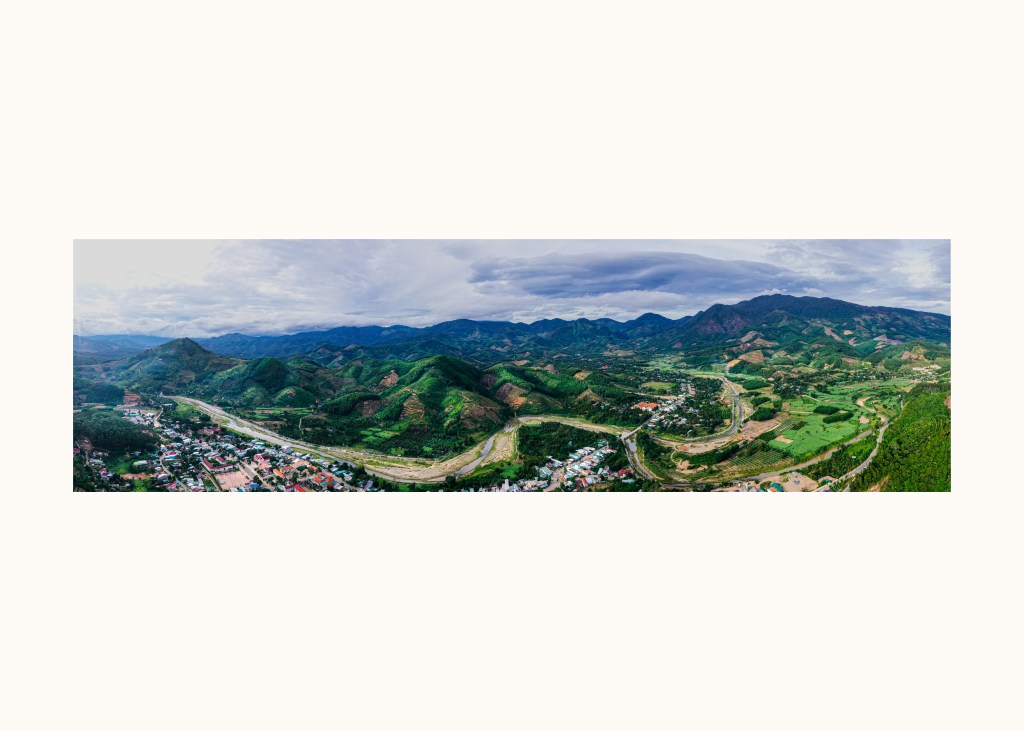 Thị trấn Tô Hạp dưới ống kính góc rộng. Dòng Sông trên hình cũng có tên Tô Hạp vốn là tên một loại cây đặc trưng ở Khánh Sơn. Ảnh: Trần Hải Bình