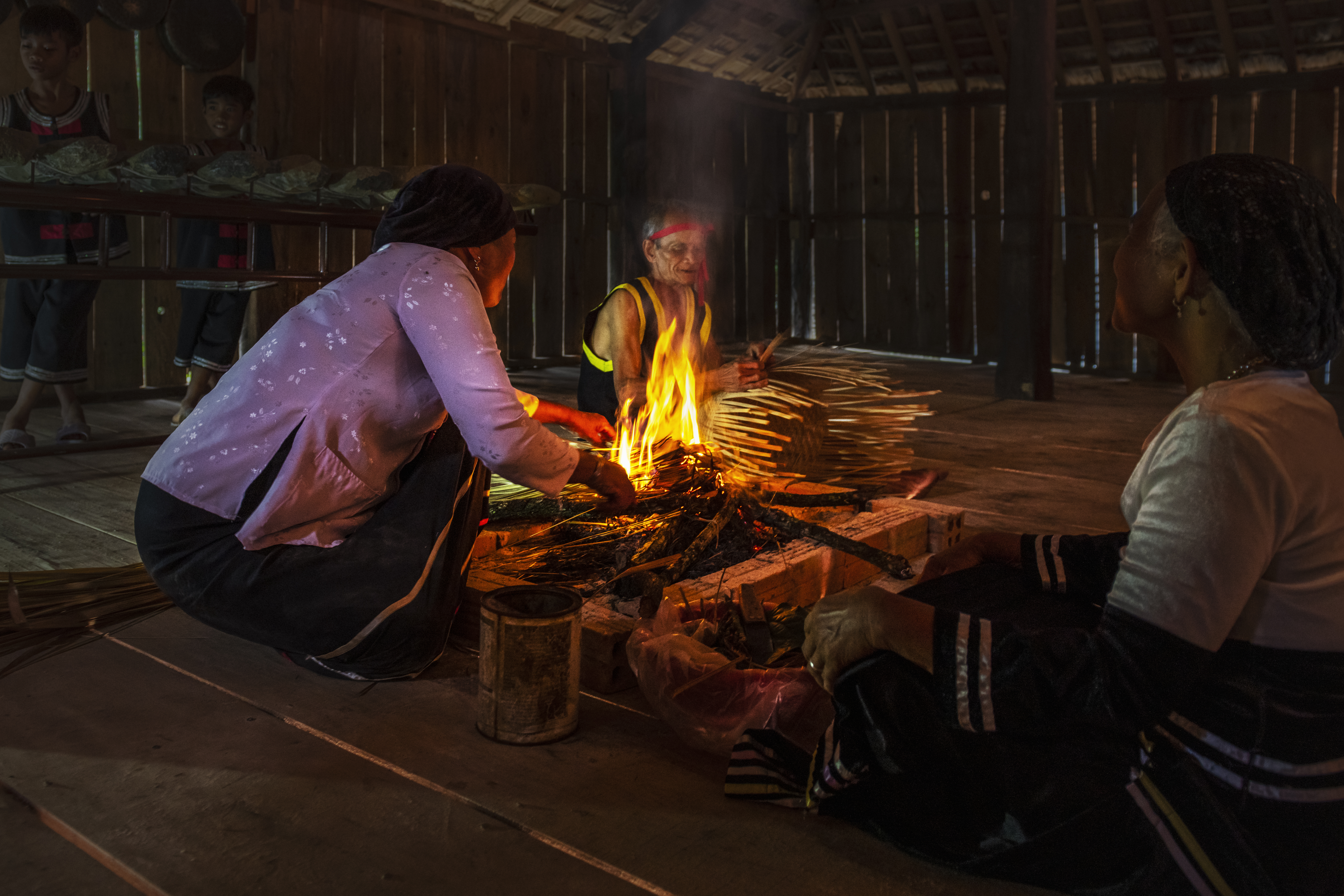 Sinh hoạt của người Rắc-lây bên trong nhà sàn. Nhà sàn của người Rắc lây cũng có những điểm khác biệt so với nhà sàn tây nguyên. Xem thêm tại đây Ảnh: Diệp Vy Hòa