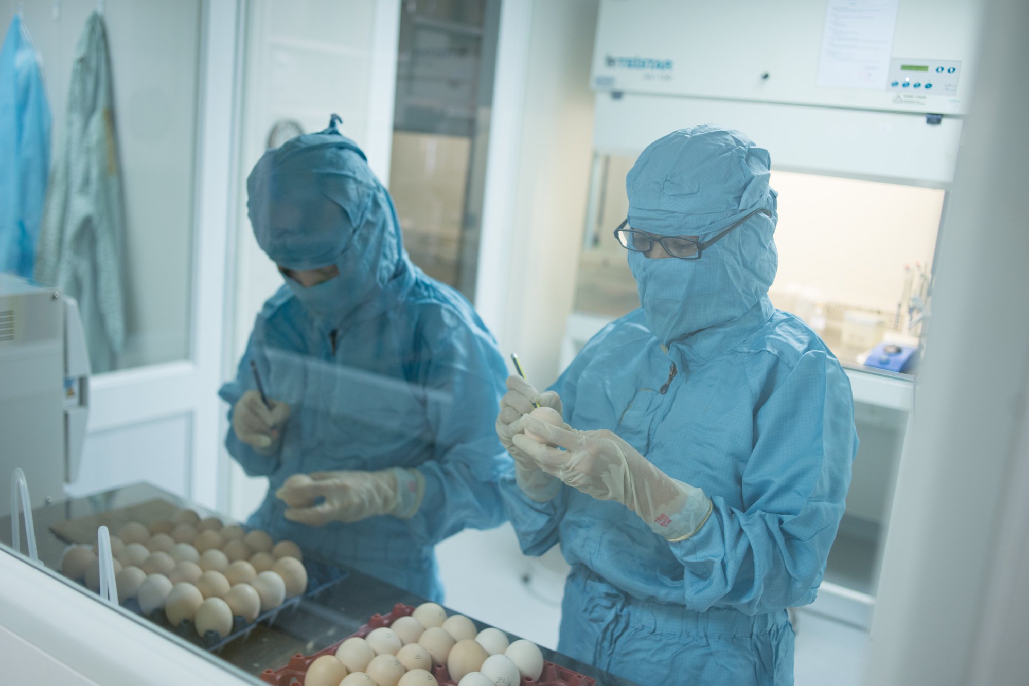 Việc IVAC “tự cung tự cấp” nguồn trứng gà sạch kỳ công hơn một chút. “Trước khi phát triển vaccine cúm thì IVAC chưa có nhà sạch nuôi gà đâu mà phải mua trứng ở các trang trại ngoài Bắc để sản xuất. Nhưng thật ra trứng này không đạt tiêu chuẩn, ăn thì được nhưng làm vaccine thì không vì có mầm bệnh ở đó. Do vậy IVAC phải tính việc tự nuôi, đầu tiên xin WHO kinh phí làm một nhà, sau đấy mới mở rộng như hiện nay”, PGS. TS Lê Văn Bé nói. Đó là một hành trình khá gian nan bởi bước đầu, họ phải nhập gà của Pháp một ngày tuổi với giá 250.000 đồng/con, đạt tiêu chuẩn là giống không đồng huyết, thuần chủng và được kiểm soát sạch 12 bệnh.