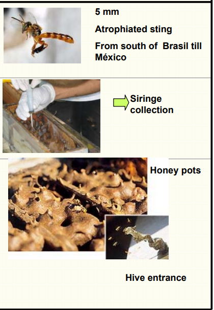 Stingless Bees that collect nectar from flowers and extrafloral nectarines. The nectar is transformed into honey in the bees’ honey-stomach before transmitting into cerumen pots developed from propolis.