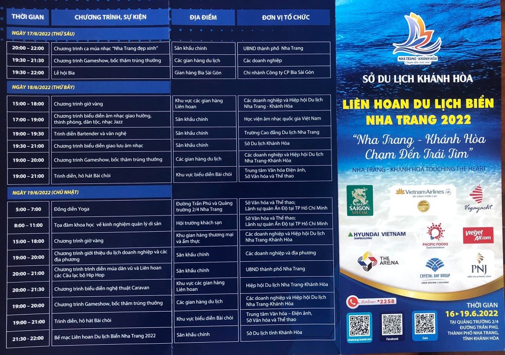 Liên hoan Du lịch Biển Nha Trang 2022 với chủ đề “Nha Trang, Khánh Hòa – Chạm đến trái tim!” sẽ diễn ra từ ngày 16 đến 19-6 tại khu vực Quảng trường 2-4 (TP. Nha Trang).