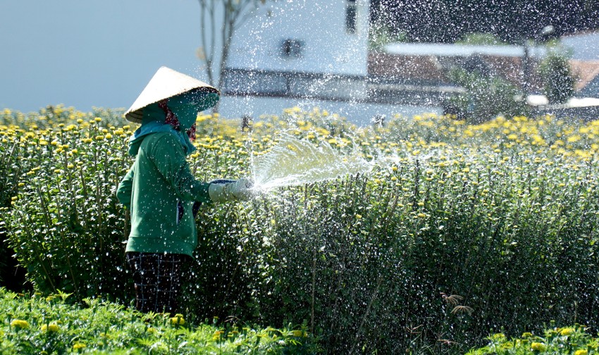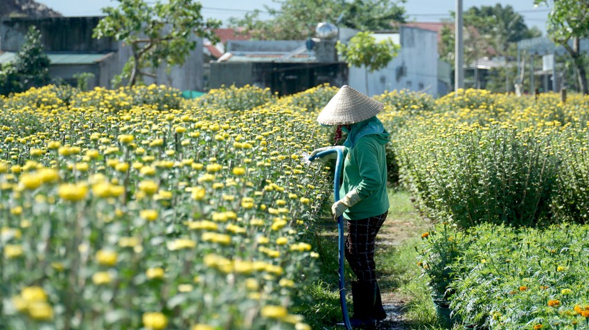 Theo các chủ vườn, cái khó của nghề là cân đối được lượng hoa trong chậu để khi nở cả chậu hoa tròn đều sắc vàng. Do đó, việc cắm cộc để định hình rất quan trọng.