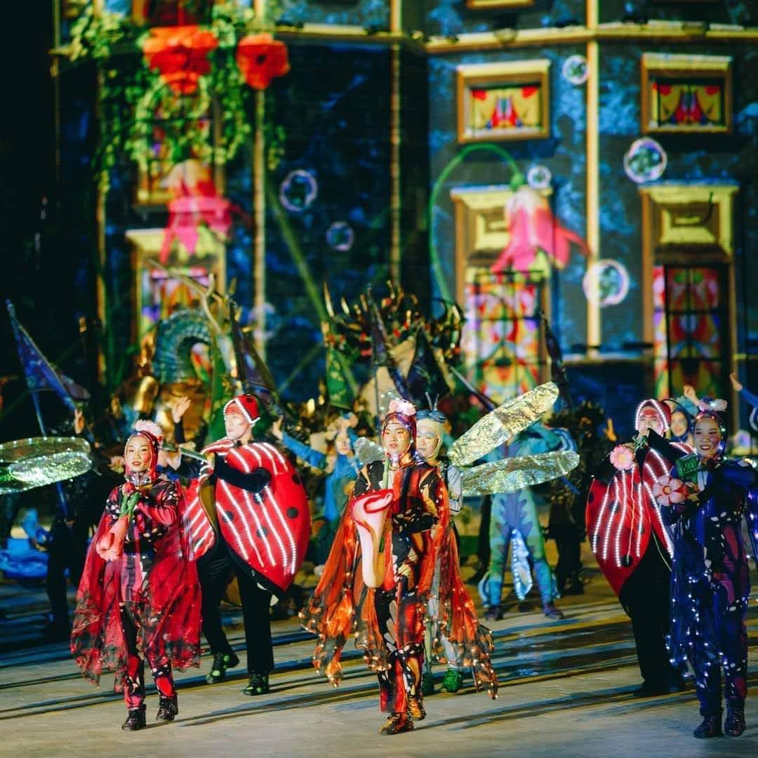 - Sự kết hợp giữa hiệu ứng 3D mapping hiện đại và sân khấu ngoài trời rộng lớn, kể câu chuyện về văn hóa và lịch sử.