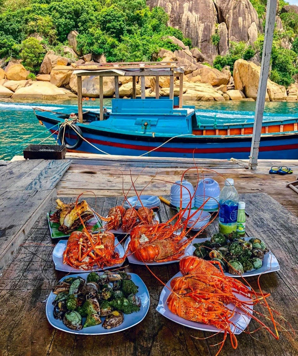 Bên cạnh đó đến Cam Ranh bạn có thể thưởng thức Hải Sản (Tôm Hùm, Sò Huyết, Sá Sùng,..), Cơm gà, Nem nướng, …
