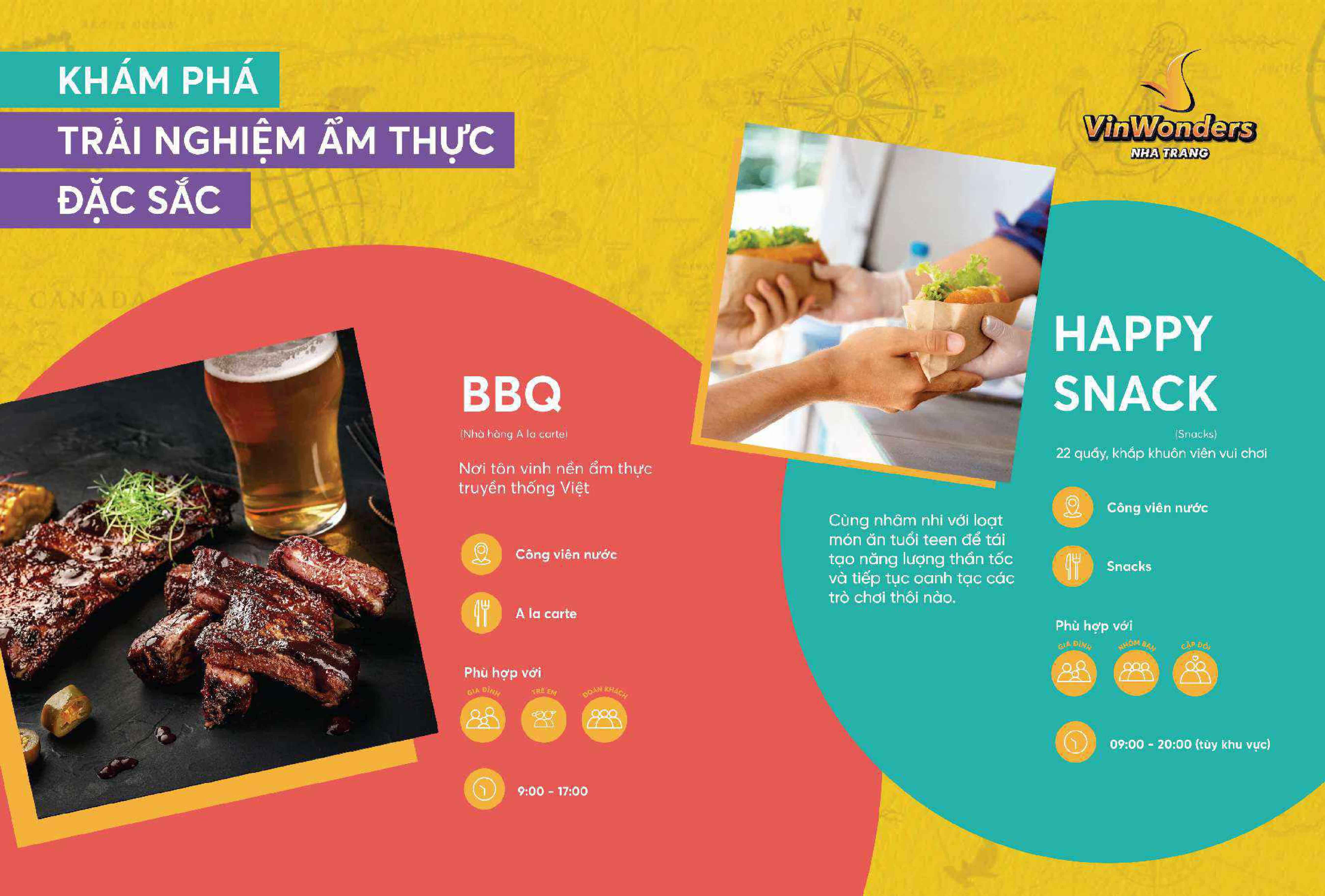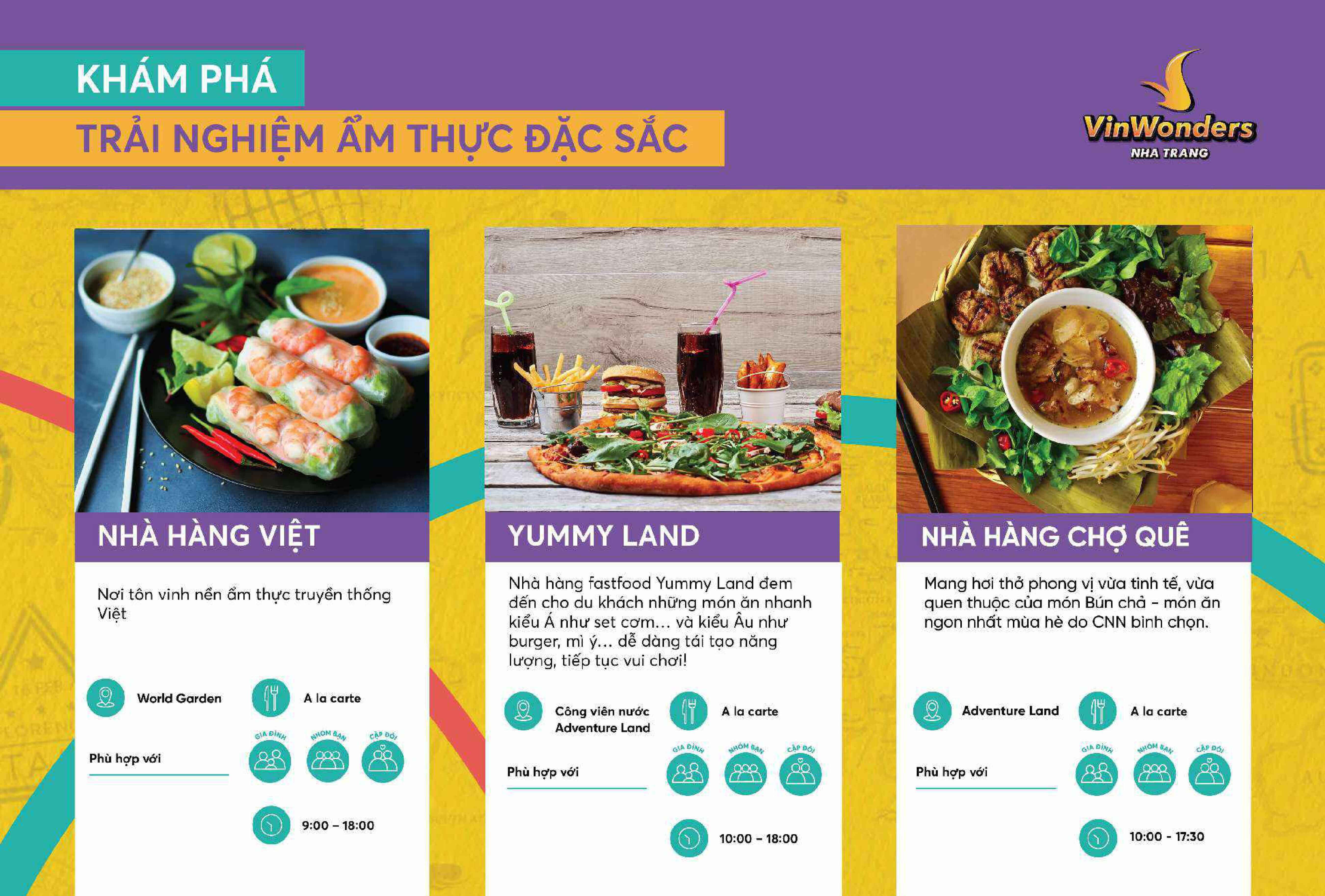 Trong đó, Nhà hàng phục vụ Buffet tại Vinwonders sẽ mở cửa từ 11h00 – 14h00 (bữa trưa) và từ 17h30 – 19h30 (bữa tối)