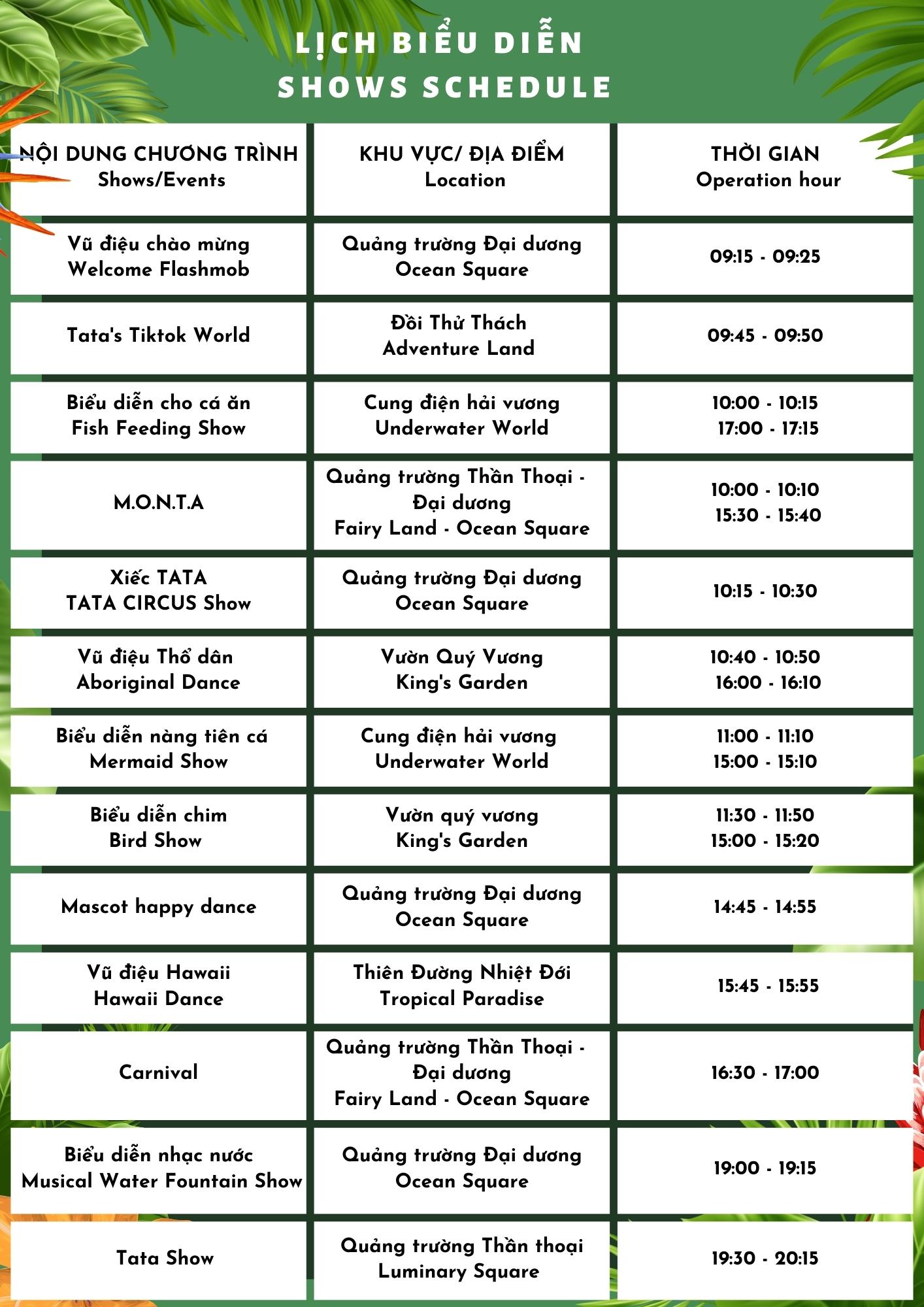 BẢNG LỊCH TRÌNH SHOW DIỄN TẠI VINWONDERS NHA TRANG MỚI NHẤT