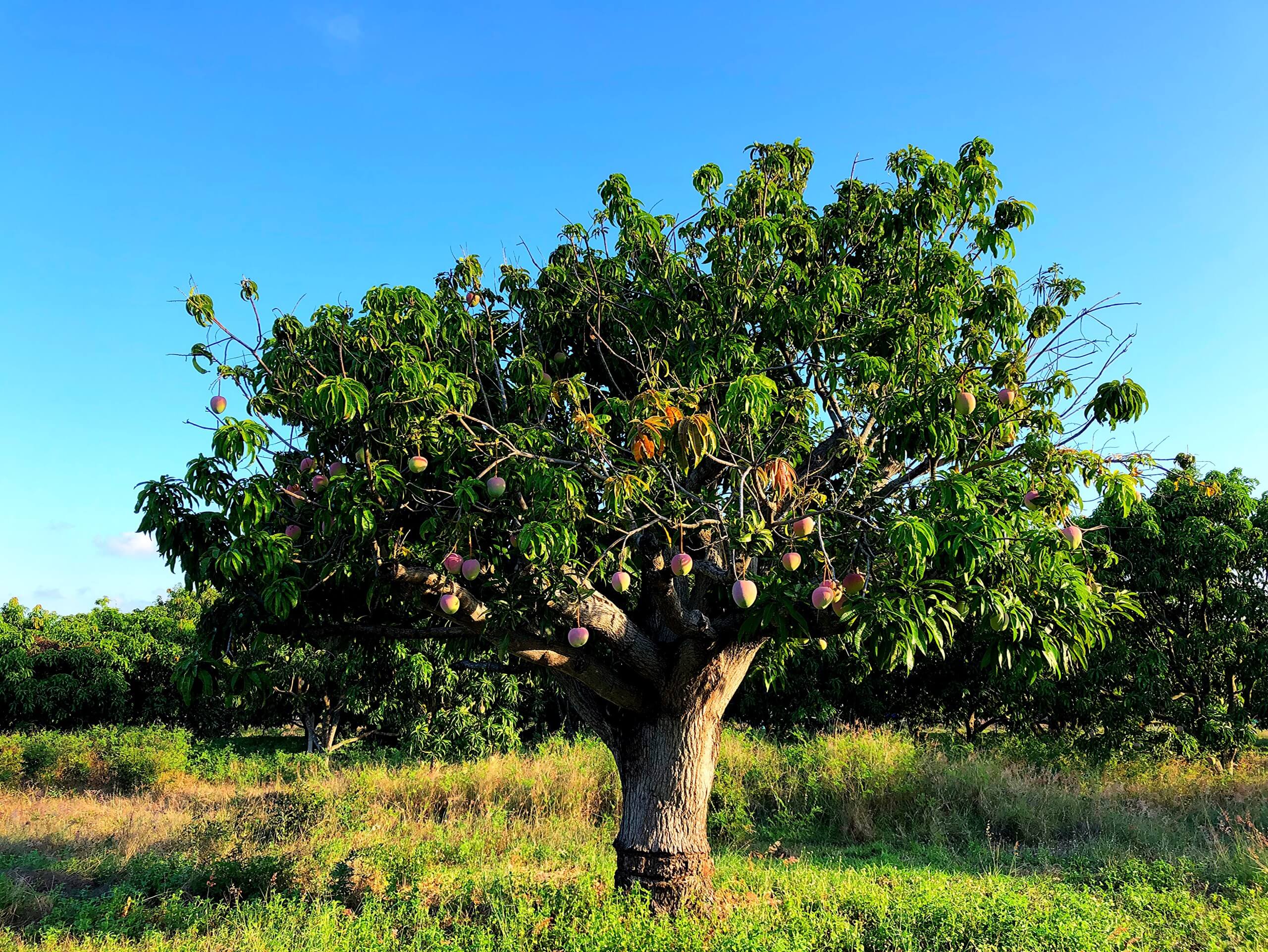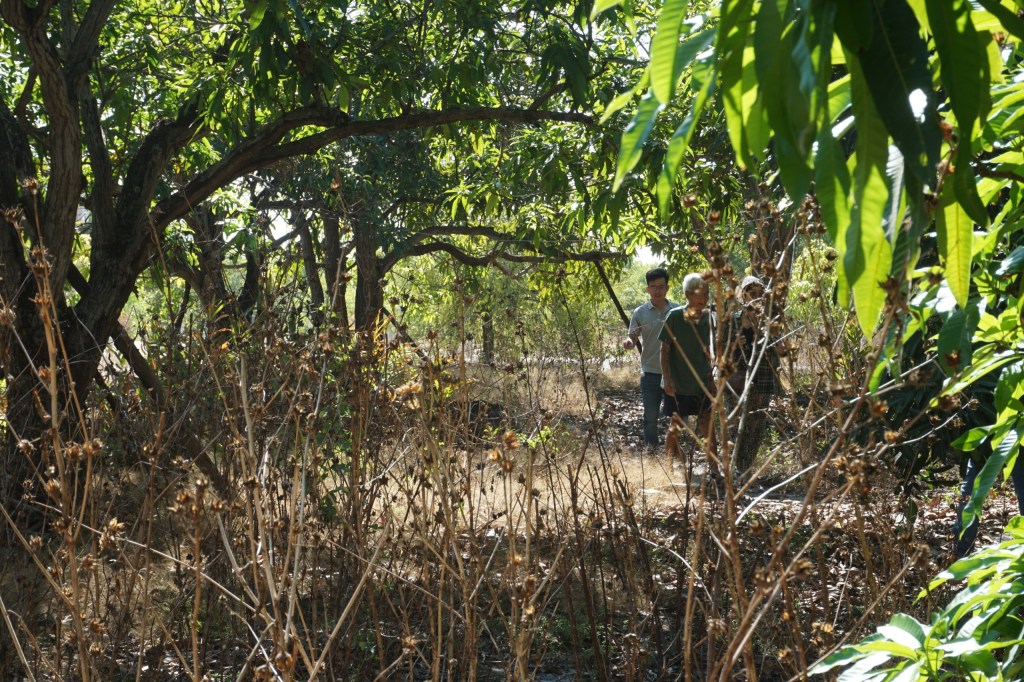 Vườn xoài nhà Huyền có rất nhiều gốc xoài cổ thụ, thân đen xì, mốc thếch, cây xoài có lộc đều có cành nhánh ngang xòe ra khổng lồ; Có cây xoài Ấn Độ hơn 70 tuổi đứng trầm mặc góc vườn, tán rậm rập, hoa thơm dịu nhẹ..nghe nói đời ông bà đã mua giống xoài Ấn độ do Pháp mang đến Cam Ranh, trồng khá nhiều, nhưng nay chỉ còn 1 cây, vùng xung quanh cũng chỉ còn rất ít cây xoài Ấn Độ từ thời Pháp còn sót lại như cây này…