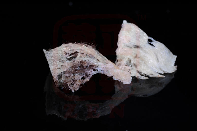 Phần tổ yến được tạo đầu tiên giúp tổ bám chắc vào vách đá. Tổ đã làm sạch tạp chất bên ngoài còn lại ít lông phía trong. Cần phải làm sạch thêm trước khi sử dụng.