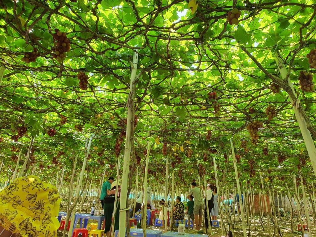 11h: Đoàn tham quan vườn nho Ninh Thuận, tự do tham quan chụp ảnh, tìm hiểu về quy trình trồng và chế biến các sản phẩm từ nho hoặc tự tay chọn cho mình những chùm nho chín mọng và thưởng thức ngay tại vườn hay mua mang về làm quả…
